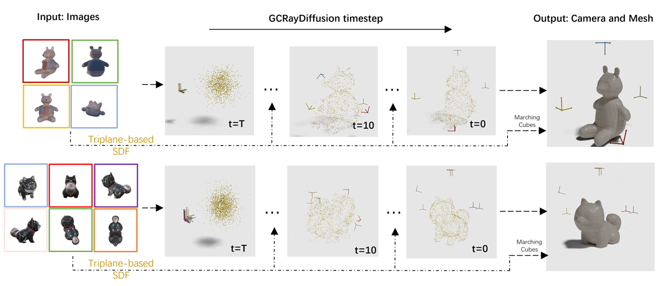 GCRayDiffusion: Pose-Free Surface Reconstruction via GeometricConsistent Ray Diffusion
